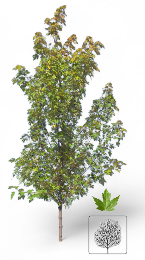 Arbre nord-américain à croissance rapide, l’érable argenté est reconnu pour son écorce gris argenté, ses feuilles profondément lobées et brillantes et sa coloration automnale jaune éclatante. Très tolérant aux sols humides et urbains, il est souvent utilisé pour les plantations dans les parcs, les rues et les grands jardins.