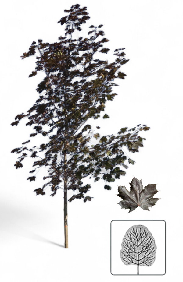 Arbre onremental au feuillage pourpre foncé intense, ‘Royal Red’ est apprécié pour sa couleur soutenue tout au long de la saison. Il forme une couronne large et dense et offre une bonne tolérance aux conditions urbaines, ce qui en fait un choix fréquent pour les parcs et les grands aménagements.