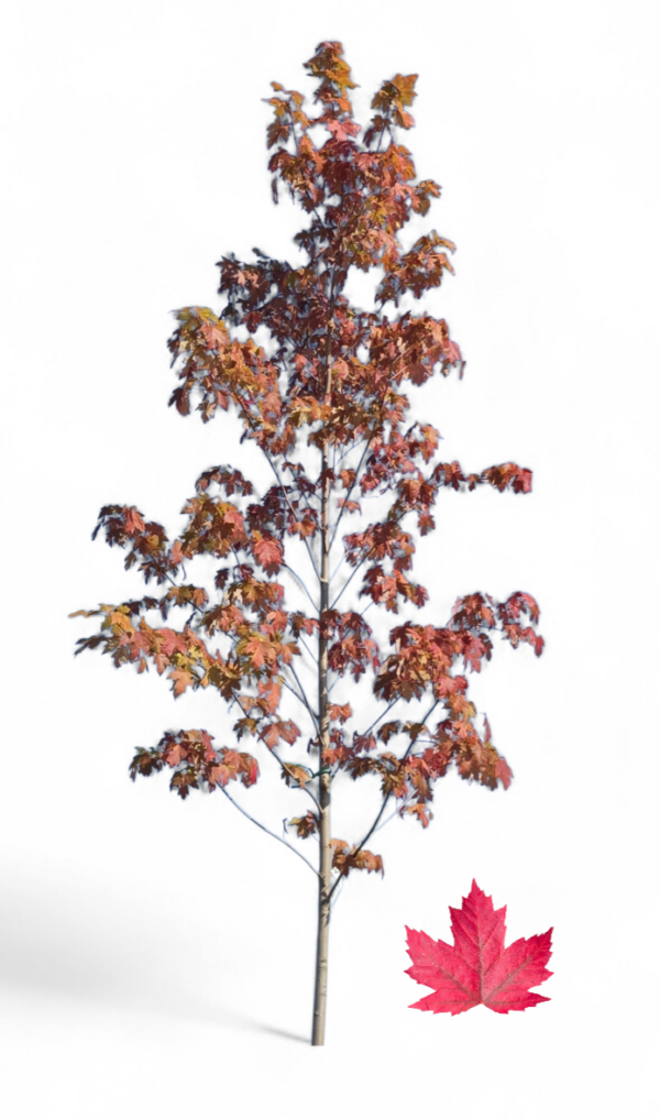 Arbre à croissance rapide très populaire pour les aménagements urbains, ‘Autumn Blaze’ combine la vigueur de l’érable argenté et la coloration spectaculaire de l’érable rouge. Il est apprécié pour sa structure solide, sa bonne tolérance aux conditions difficiles et son rouge automnal éclatant.